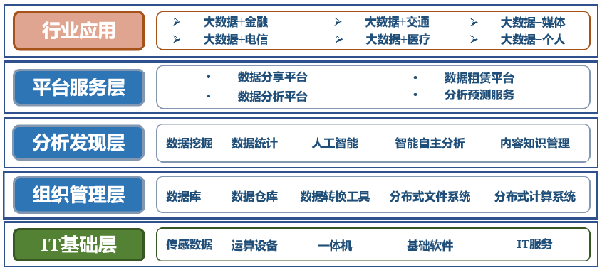 5) 大數(shù)據(jù)中心大數(shù)據(jù)中心可以說是海量信息時代的諾亞方舟,其建設(shè)內(nèi)容包括:機房樓、生產(chǎn)管理樓等數(shù)據(jù)中心基礎(chǔ)配套設(shè)施;傳輸光纖、互聯(lián)網(wǎng)交換中心、數(shù)據(jù)服務(wù)平臺等支撐數(shù)據(jù)中心發(fā)展網(wǎng)絡(luò)及服務(wù)設(shè)施;互聯(lián)網(wǎng)數(shù)據(jù)中心業(yè)務(wù)部署與應(yīng)用協(xié)同;車輛網(wǎng)、衛(wèi)星大數(shù)據(jù)等垂直領(lǐng)域的大數(shù)據(jù)研發(fā)及產(chǎn)業(yè)化項目。新興產(chǎn)業(yè)的未來發(fā)展將大量依賴于數(shù)據(jù)資源,從國家政務(wù)到各大行業(yè),建立數(shù)據(jù)中心將有助于促進(jìn)行業(yè)轉(zhuǎn)型和實現(xiàn)企業(yè)上云。在當(dāng)今的技術(shù)浪潮中,互聯(lián)網(wǎng)數(shù)據(jù)中心是最重要的趨勢。根據(jù)《全國數(shù)據(jù)中心應(yīng)用發(fā)展指引》,截至2017底,我國數(shù)據(jù)中心機架規(guī)模為166萬臺,增速33.4%,預(yù)計2022年會帶動相關(guān)投資超3.5萬億元。 圖5 大數(shù)據(jù)產(chǎn)業(yè)鏈